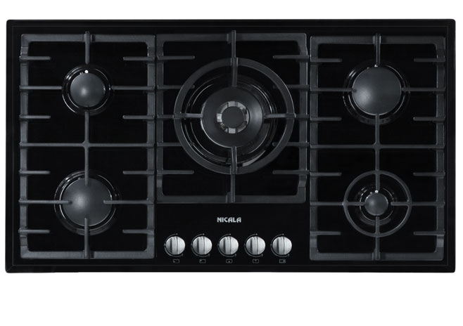 توان حرارتی کلی اجاق 12.1 KW شیشه مشکی مقاوم در برابر حرارت دارای شیرهای دو جزئی