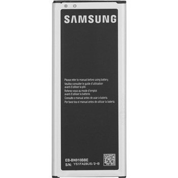 مدل «EB-BN910BBE» از باتریهای سامسونگ است که برای باتری گوشی موبایل سامسونگGalaxy Note 4 تولید شده است. این باتری از نوع لیتیوم یون بوده و 3220 میلیآمپر ساعت ظرفیت دارد. باتریهای لیتیوم یونی نسبت به نوع پلیمری قیمت کمتری دارند. وزن بیشتری دارند و چگالی آنها بالاتر است. چگالی بیشتر به این معناست که میتوانند انرژی بیشتری را در خود ذخیره کنند. تخلیه انرژی کمی دارند اما گذشت زمان بر عملکرد آنها تأثیر منفی دارد. دارندگان گوشیهای موبایل سامسونگ Galaxy Note 4 میتوانند از قابلیت تعویض باتری گوشی موبایل خود بهره ببرند و در صورت کاهش کیفیت آن از این محصول بهعنوان جایگزین استفاده کنند.